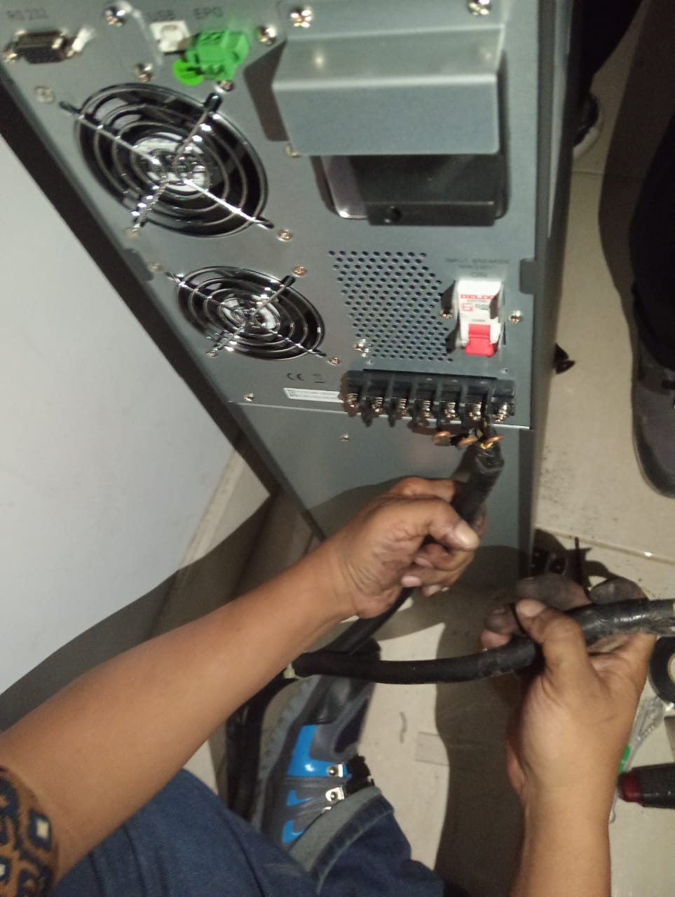 "Perawatan UPS dilakukan untuk memastikan suplai daya tetap stabil dan aman saat terjadi gangguan listrik. Proses maintenance meliputi pengecekan baterai, pembersihan komponen internal, pengencangan konektor dan pengujian beban. Hasilnya, UPS bekerja lebih efisien, suhu lebih terkontrol, dan unit siap dipakai tanpa hambatan untuk operasional 24/7."